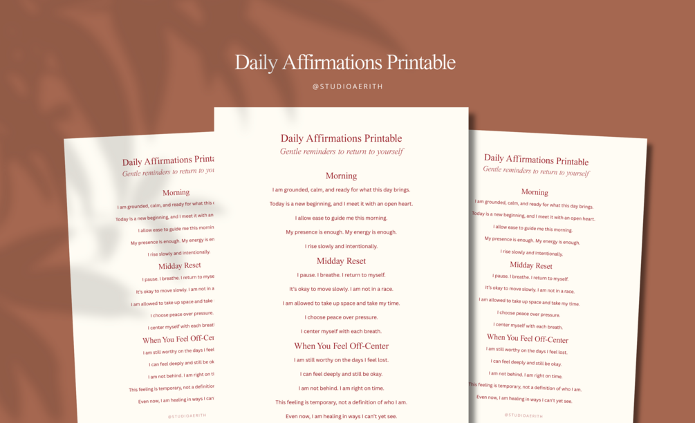 Ready to fill your day with calm and clarity? Download your free Daily Affirmations Printable now and begin each day with softness and intention.